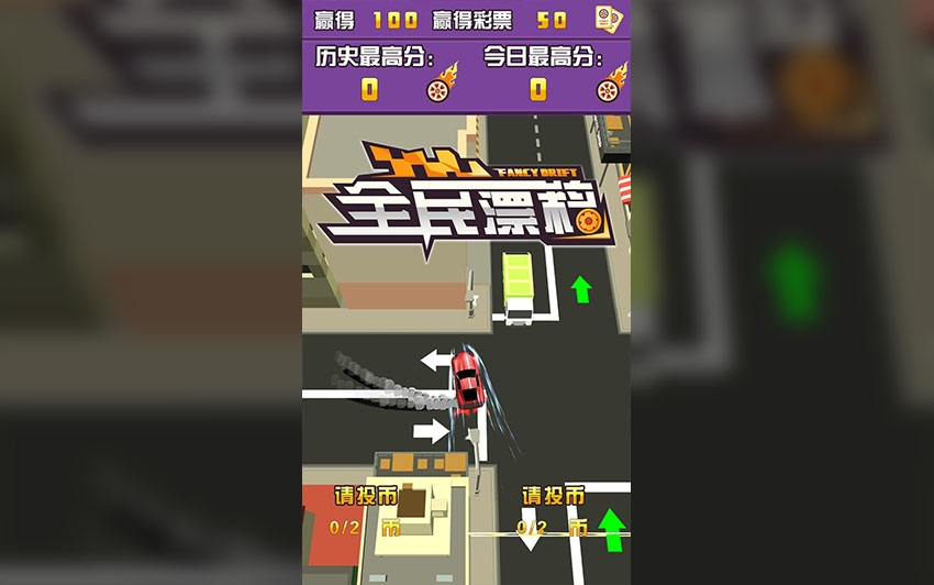 《全民漂移》是閃撲動漫受托制作的一款街機游戲。在該款游戲中,玩家通過按鍵操縱在城市里疾馳的賽車。每當去到彎道處時,玩家需要抓住時機進行漂移。若漂移失敗則玩家損失生命值。通過漂移的完美程度,玩家會獲得不同評價從而得到不一樣的分數(shù)。
